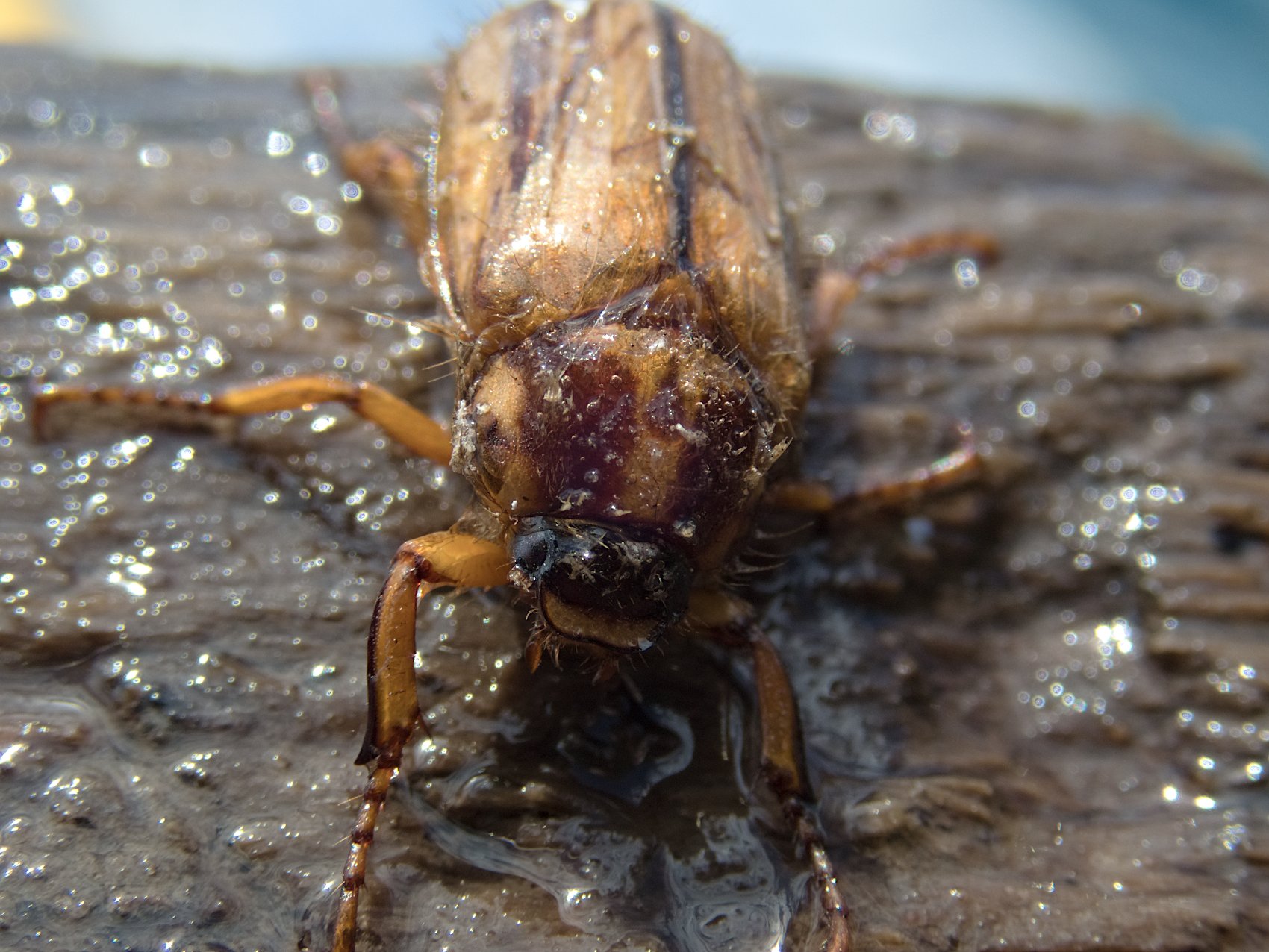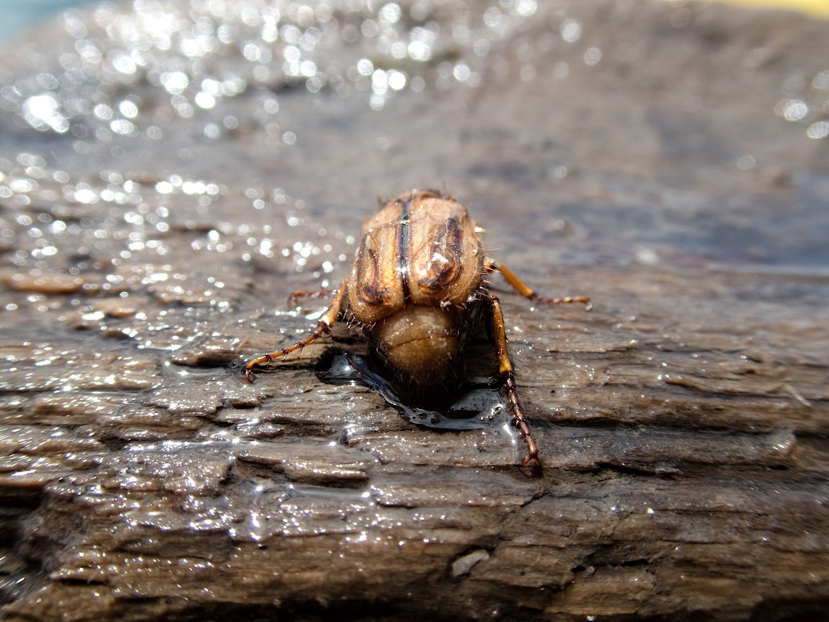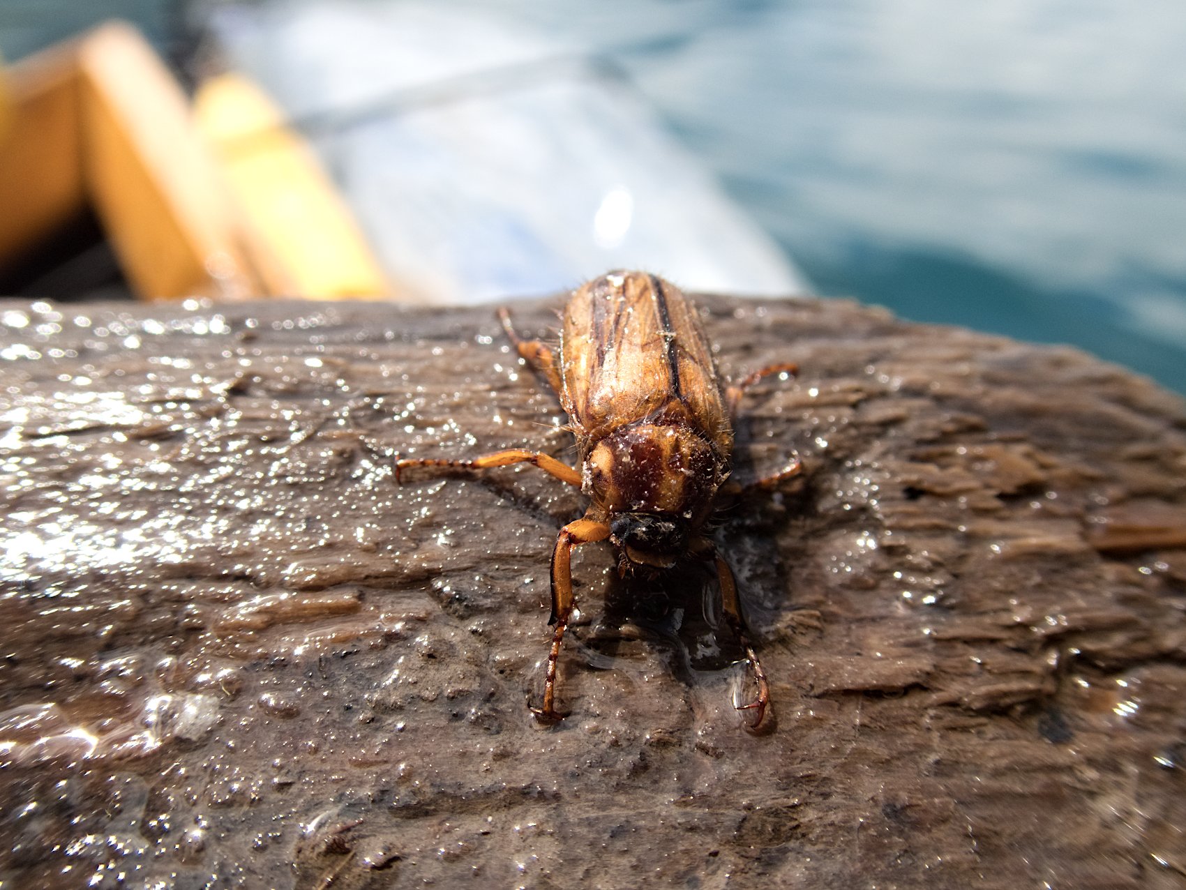 Junikäfer auf Holz im See