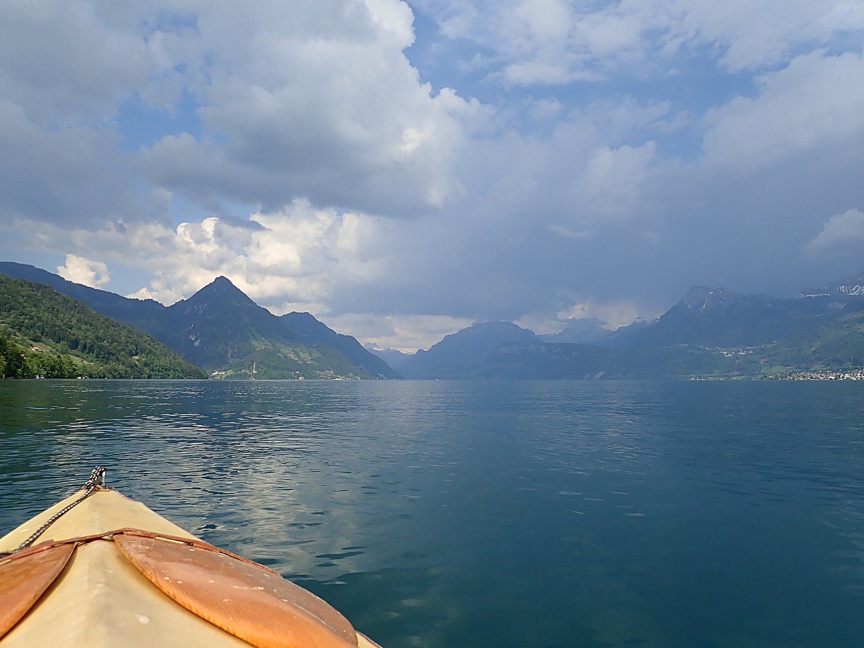 Gewitterwolken über dem SeeUnd dann dachte ich später eine Zeitlang, dass ich mich selber retten muss – vor dem Gewitter. Hat sich aber zum Glück wieder zurück in die Berge verzogen 🙂