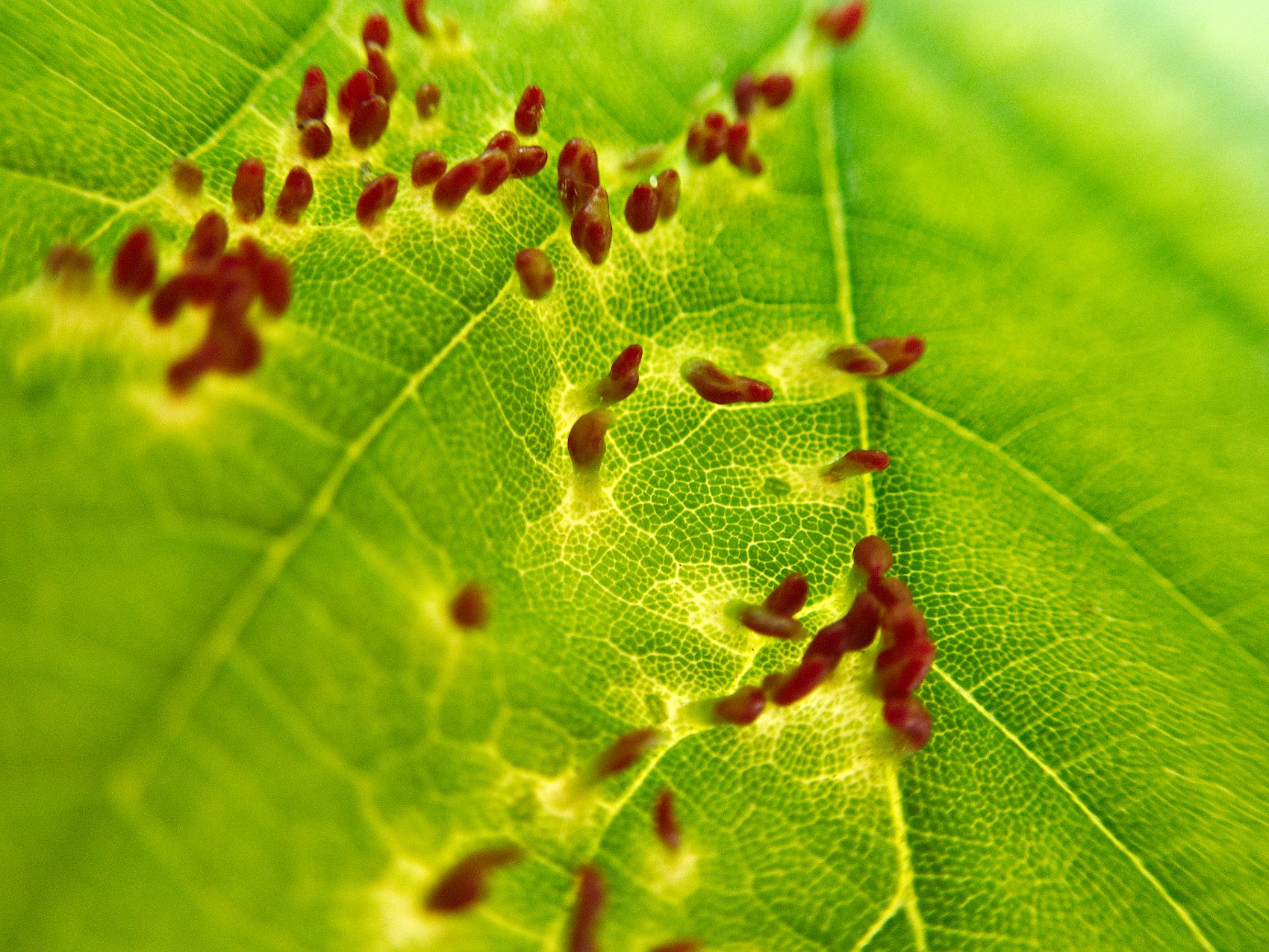 Auch Schädlingsbefall kann (optisch) schön sein. Diese roten Zapfen, sogenannte Gallen, sind meistens eine Reaktion des Baums auf Gallmilben. Die Gallmilben verändern das Wachstum der Blattzellen und schaffen so Hohlräume, in denen die Milben Schutz vor Feinden haben. Von Schädlingsbefall zu reden ist aber eigentlich nicht korrekt, weil für den Baum sind die Gallmilben ungefährlich.